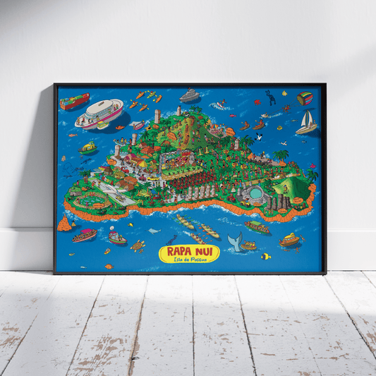 Póster/ Mapa Ilustrado Rapa Nui / Isla de Pascua 50x70