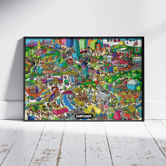 Póster/ Mapa Ilustrado Caos en Santiago 50x70