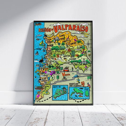 Póster/ Mapa Ilustrado Región de Valparaíso 50x70