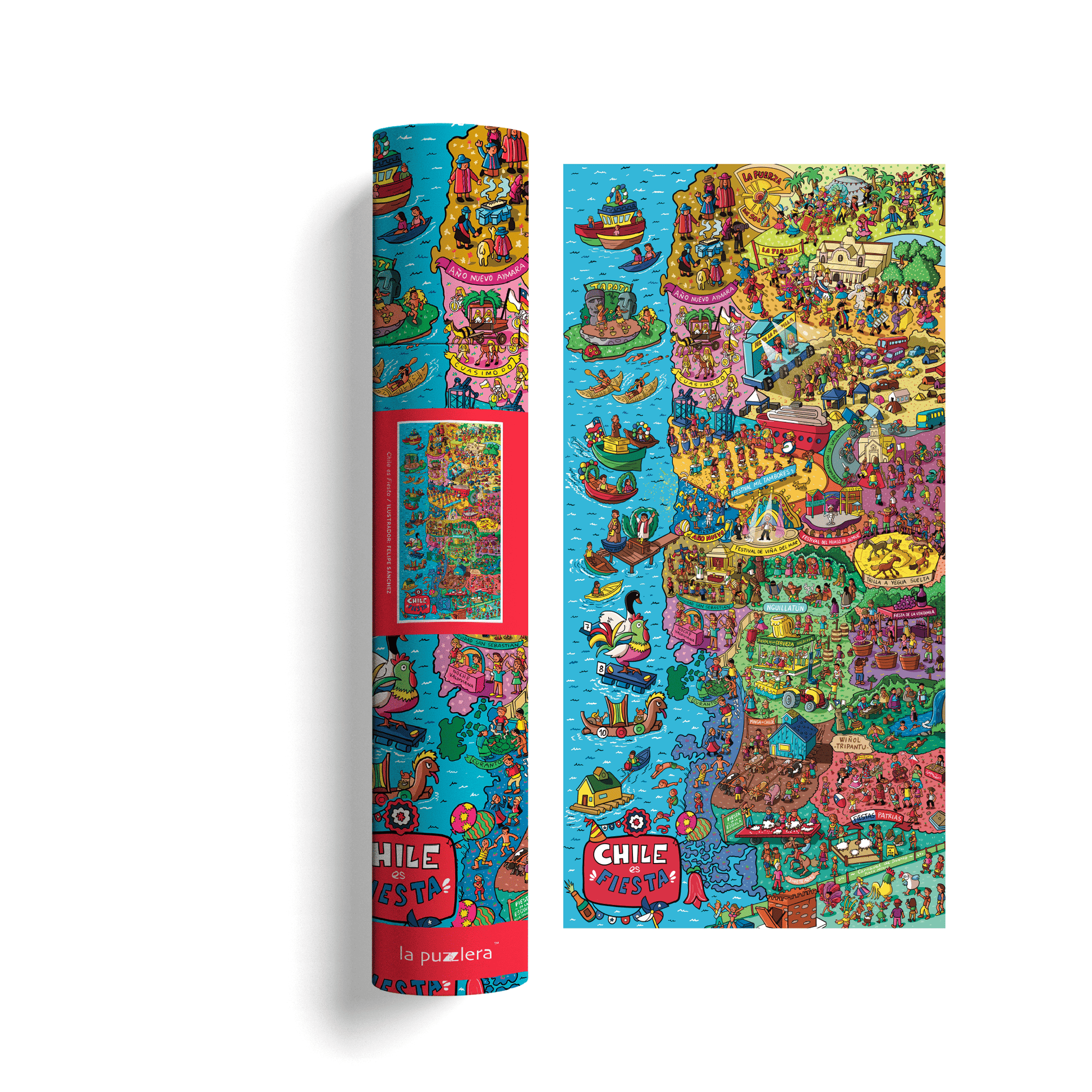 Póster/ Mapa Ilustrado Chile es Fiesta 40x80