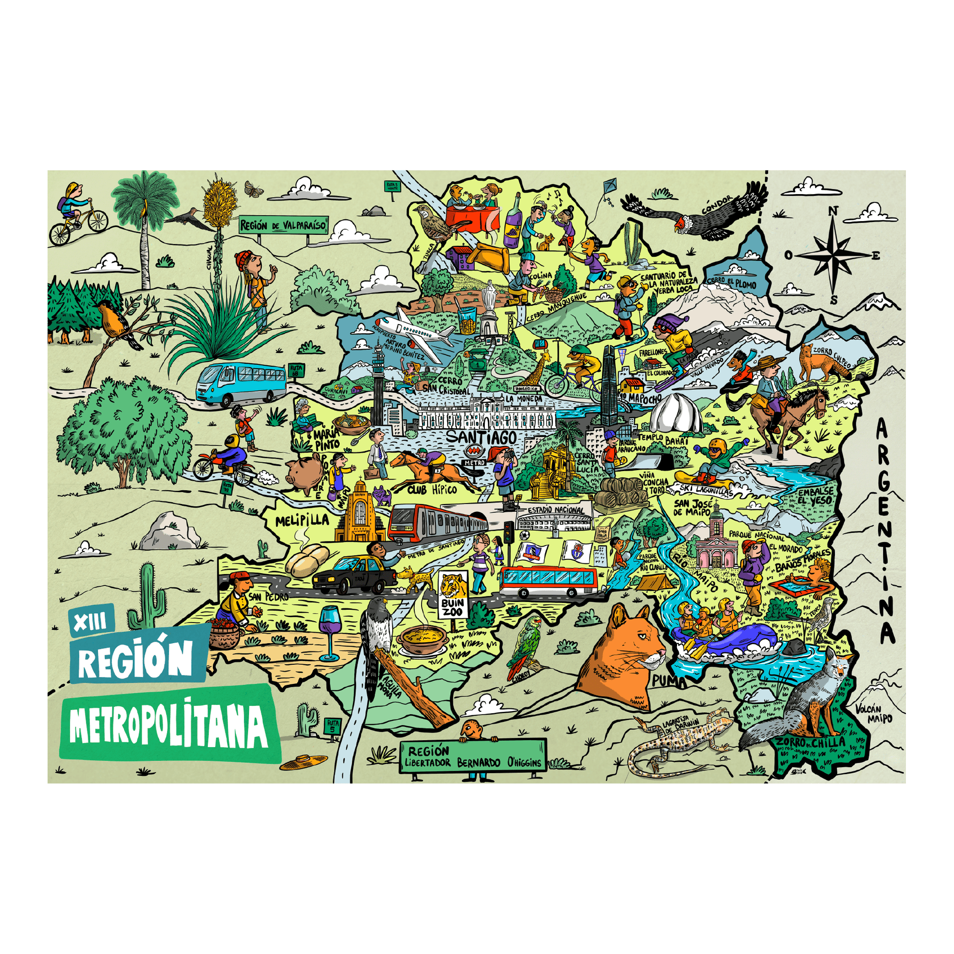 Póster/ Mapa Ilustrado Región Metropolitana 50x70